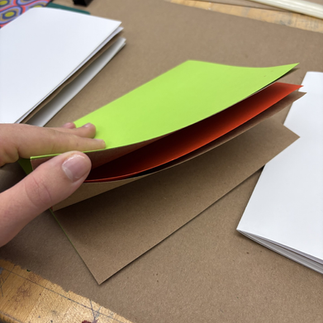 I think creating my own book was an ideal exercise in managing perfectionism by taking on the challenge of a new medium. Making a journal or book requires precision, but how precise can we be as novice bookbinders? I folded my pages as perfectly as I could, but some of them didn't line up. I followed directions to correctly align my hardcover, but still had to scrap my first attempt and restart. Each time I made a mistake, my book gained more character. This is the marrow of creativity: trying new things, sucking at them, then trying again.